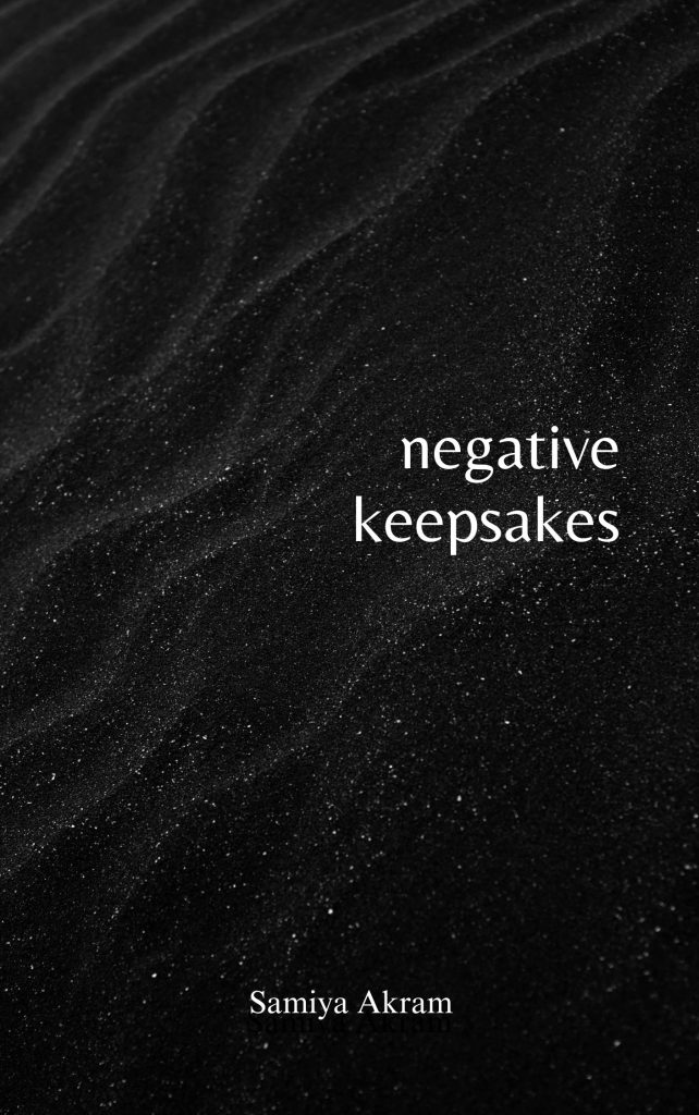 ‘negative keepsakes’ is a collection of poetry and prose about the difficult space between holding on and letting go. It explores what it means to release someone you once loved deeply, and the way memories continue to linger long after they are gone. These pieces capture the confusion, the silence, and the weight of absence that never fully leaves. This book is not about healing or moving forward—it is about the in-between, where the past still feels alive, and where letting go is not an end, but an endless process of remembering and learning to live with what remains.